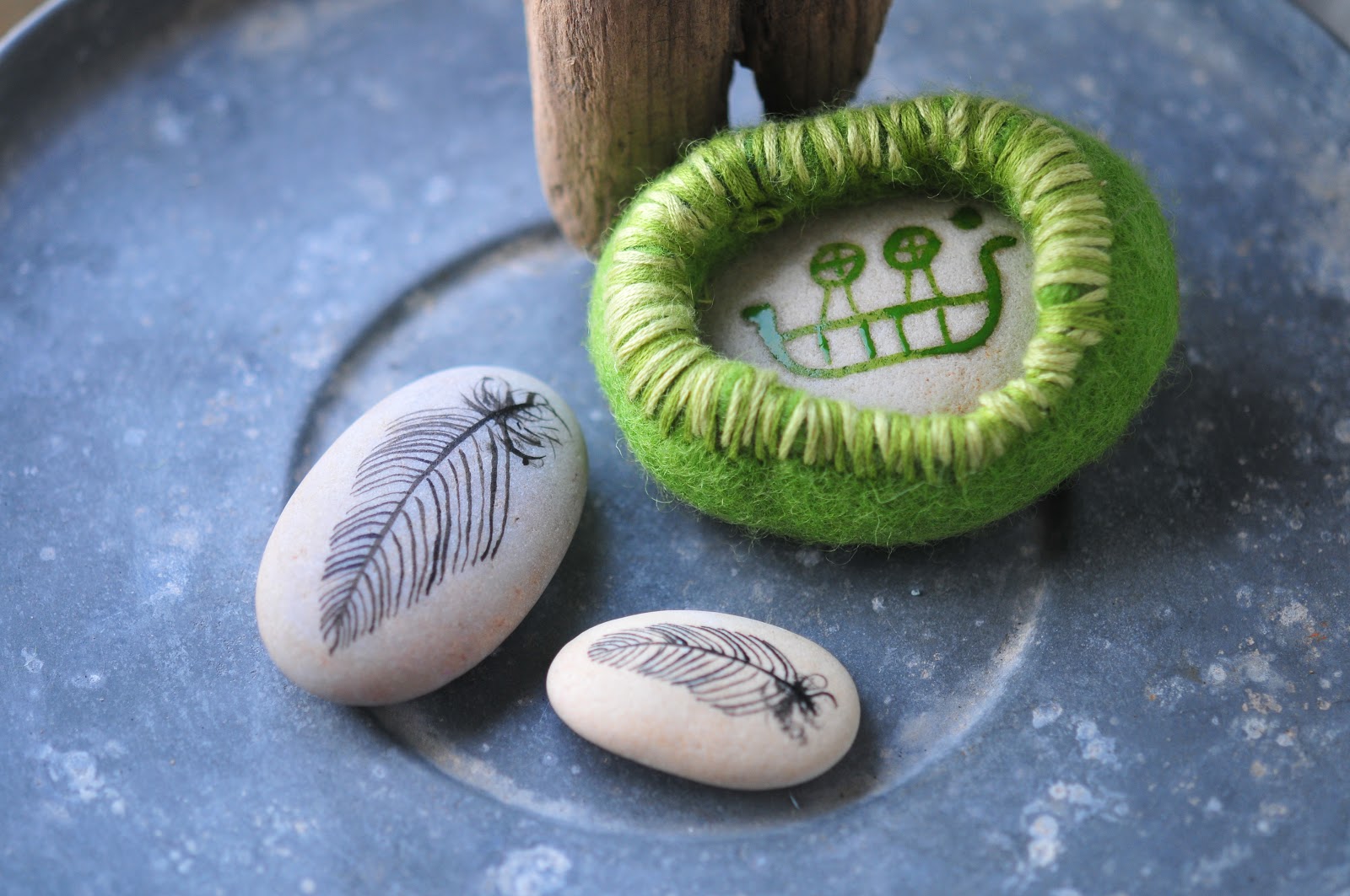 here's what happened with my green felted stone - in fact, in this shot, it's not even dry yet. if you recall, i used lisa's stone felting tutorial. and i