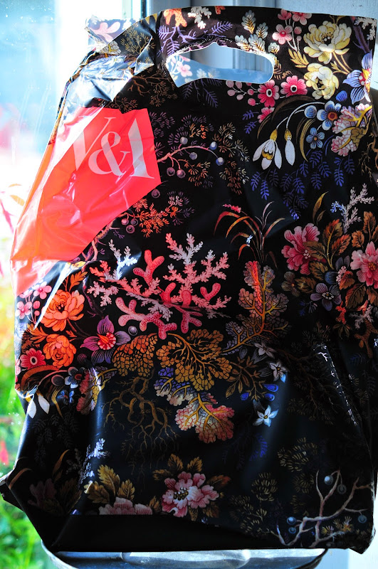 i got out my quilt book purchase from the V&A museum as i emptied the last of the suitcases from our trip (yes, i'm slow, so sue me)...even their bags are gorgeous, don't you think? the quilt exhibition was back in 2010, but the book is gorgeous (more about that another time) and thought-provoking.