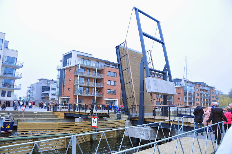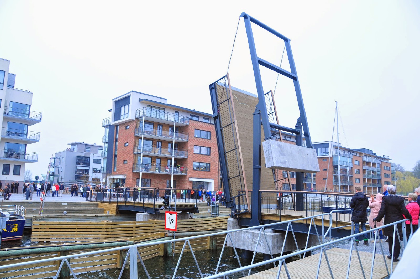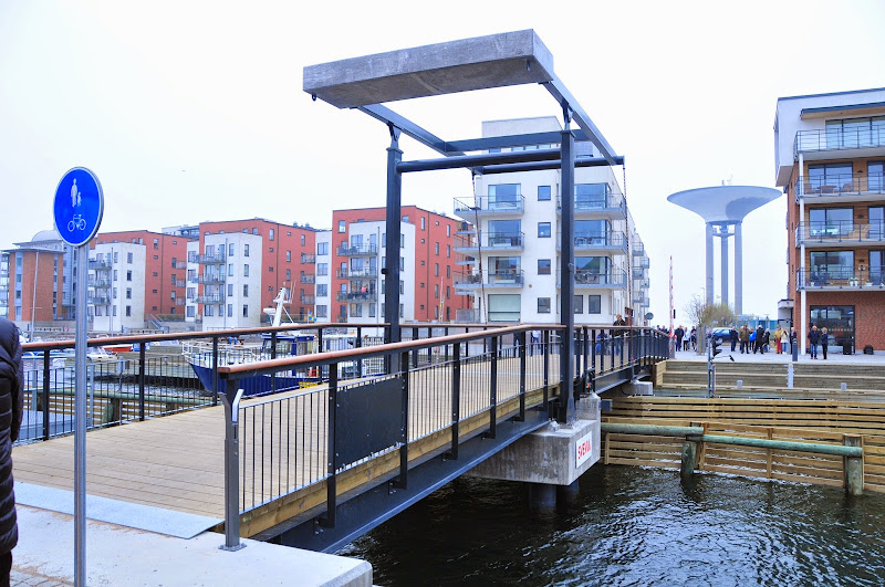 this stylish little foot bridge, connecting the old and "new" harbors in landskrona was named after my late father-in-law on saturday. we went to the ceremony. the ceremony was a bit strange and confusing and it became clear from the passers-by that the bridge had actually been open for some time, as people kept wandering across, just lifting up the ribbon which hadn't yet been cut. there was also an odd potato-head woman who did the actual cutting of the ribbon. since i couldn't really hear that well and my ability to understand spoken swedish is a limited at best, it was unclear to me what her connection to it all was. perhaps she's the one who drove to holland and picked up (stole?) the bridge in the first place.