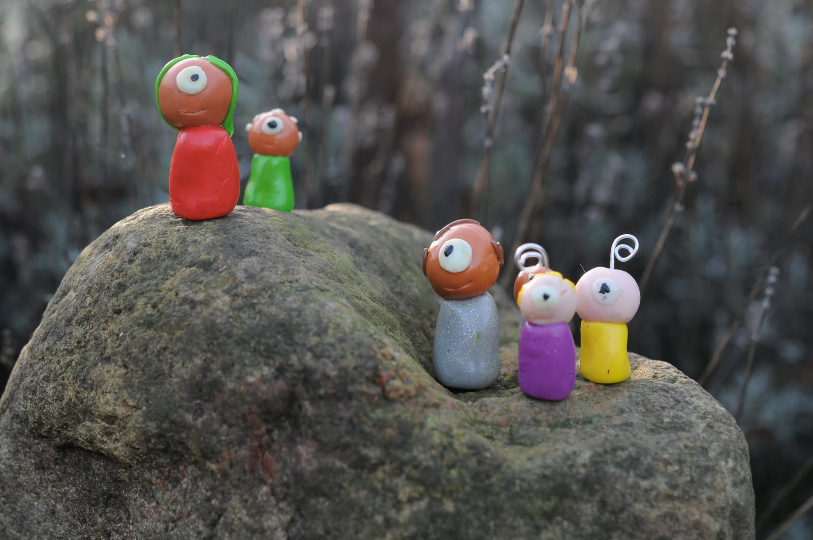 ...and unexpected. an everyday thing and yet not. an object that isn't necessarily useful, but which brings joy, just because it's so colorful and whimsical. i found these colorful felted rocks on etsy. they're made by an artist named reya who lives in the netherlands. and there's a real rock on the inside. what a totally cool idea.