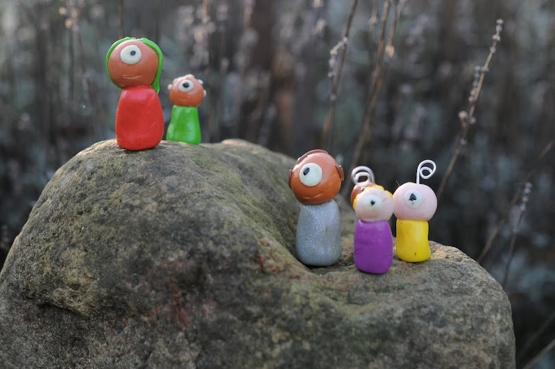 we are working on something really fun around here and i'm really excited about it. as those who came to blog camp 2.0 know, sabin invented these little one-eyed guys. with some help from my sister and a clever and creative friend of hers, we have dubbed them monocules©. and we are working on their story. and a whole product line. and i'm giddy. because it's totally a family project. sabin invented them and makes them, husband's spinning the story, my sister came up with the name and me, i'm the paparazzi, posing them fetchingly in the garden. it's a collaboration made in heaven. are they super cute or what? we'll be sharing their stories very soon.