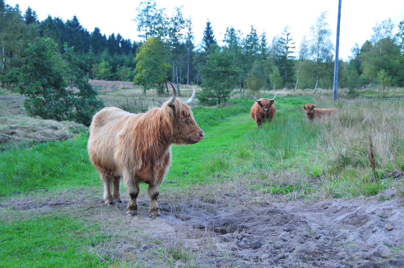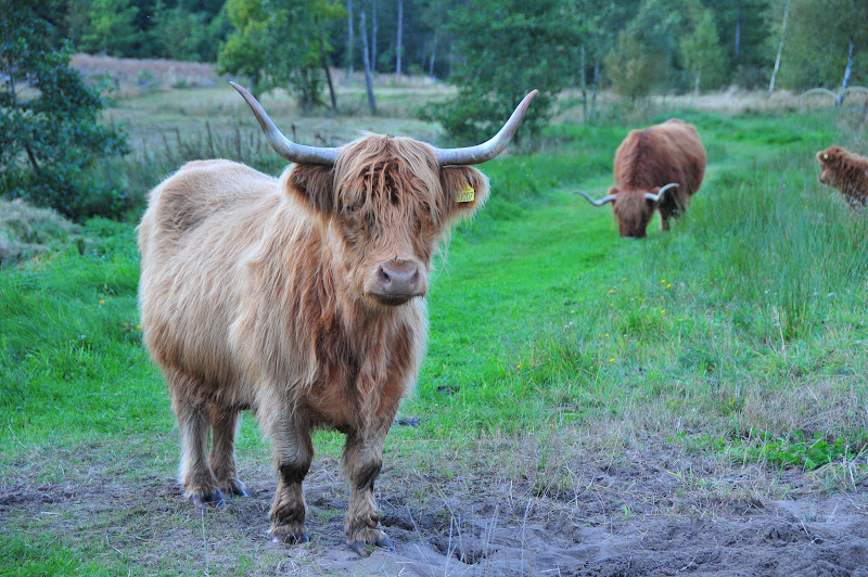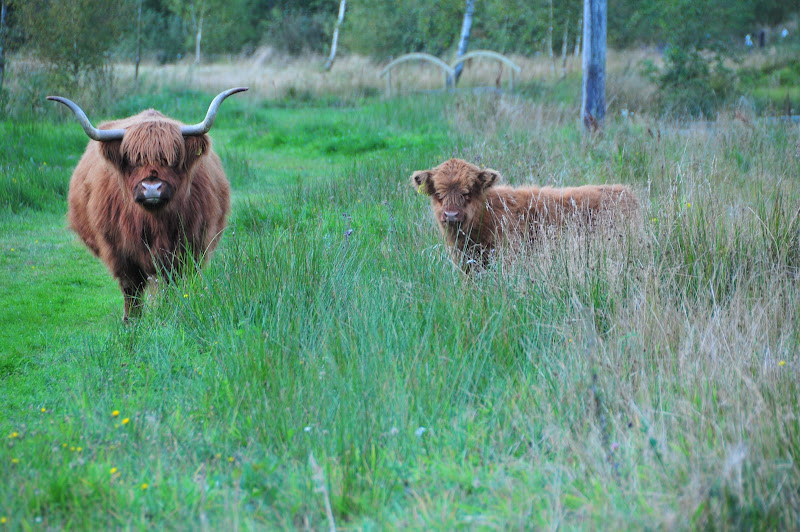 i'm fast becoming a bit enamored of cows. i spotted these scottish highlanders today. i think i could have convinced this one to follow me home. i don't know what scottish highlanders are known for (beef? milk? their "wool?"), but i want one anyway.