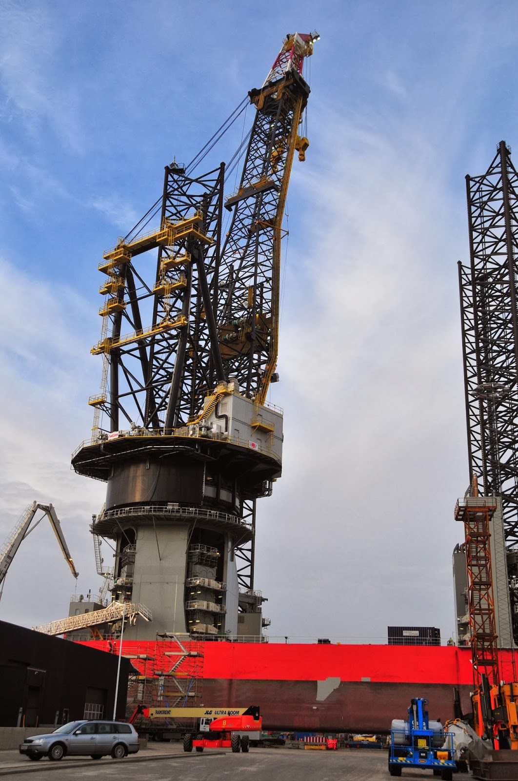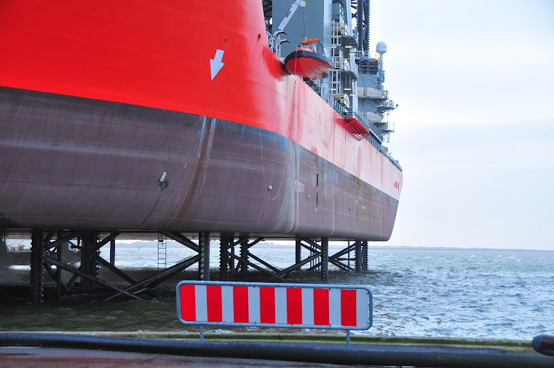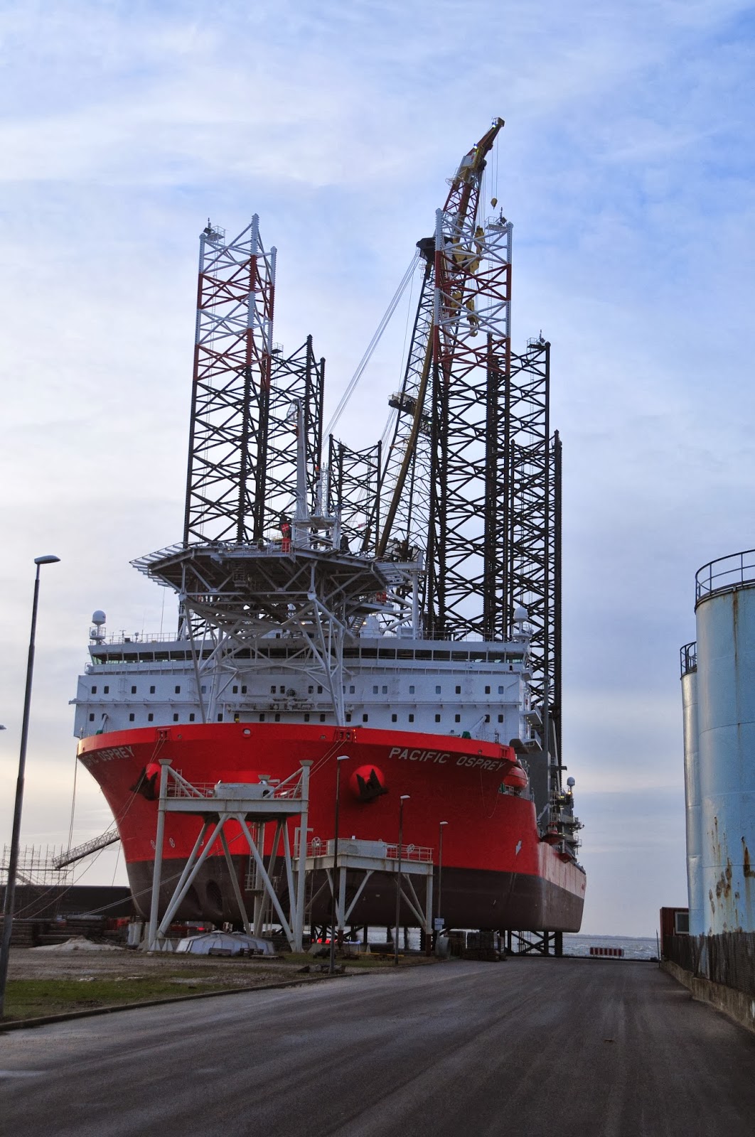 here's another shot that shows the legs a bit more. they are 105 meters long, so they can lift the ship up, even in fairly deep water.