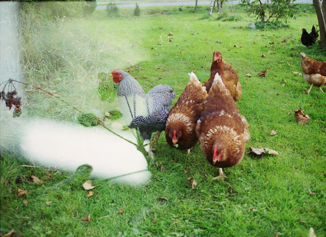 the chickens run around, lifting their feet as if they're trying out monty python's silly walks.