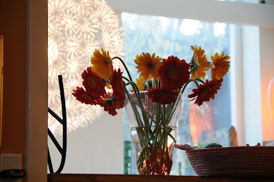 i've made my own striped scarf as long as i want it to be and have only to go down to the local knitting shop and have the nice lady there show me how to join the two ends and then it will be finished. in the meantime, i have turned to one for sabin. she had to have an identical basket to mine for the project and we gathered all of our soft, bright cotton yarns into it and i'll make a colorful scarf for her like mine. she doesn't get along too well with wool, so we thought the cotton was a good solution and it was a way to use some of a stash of yarn that i had acquired out of addiction to the acquisition of colorful, soft things rather than having any project in mind. being an inexperienced knitter, i wasn't sure at first if i liked the cotton, but now that i've gotten a little way in, i do like it and it will be nice for spring, which has finally shown up.