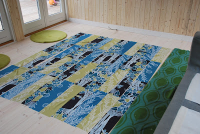and although it's awfully cold out there, i used my writing house to lay out the strips! it's even farther than it looks above because it's all pinned together now. i just have to sew it all up. but first, a bath, because i got really cold out there! that fleece that's beside it will be the backing...it matches better than it looks like it does in this pic, i promise.