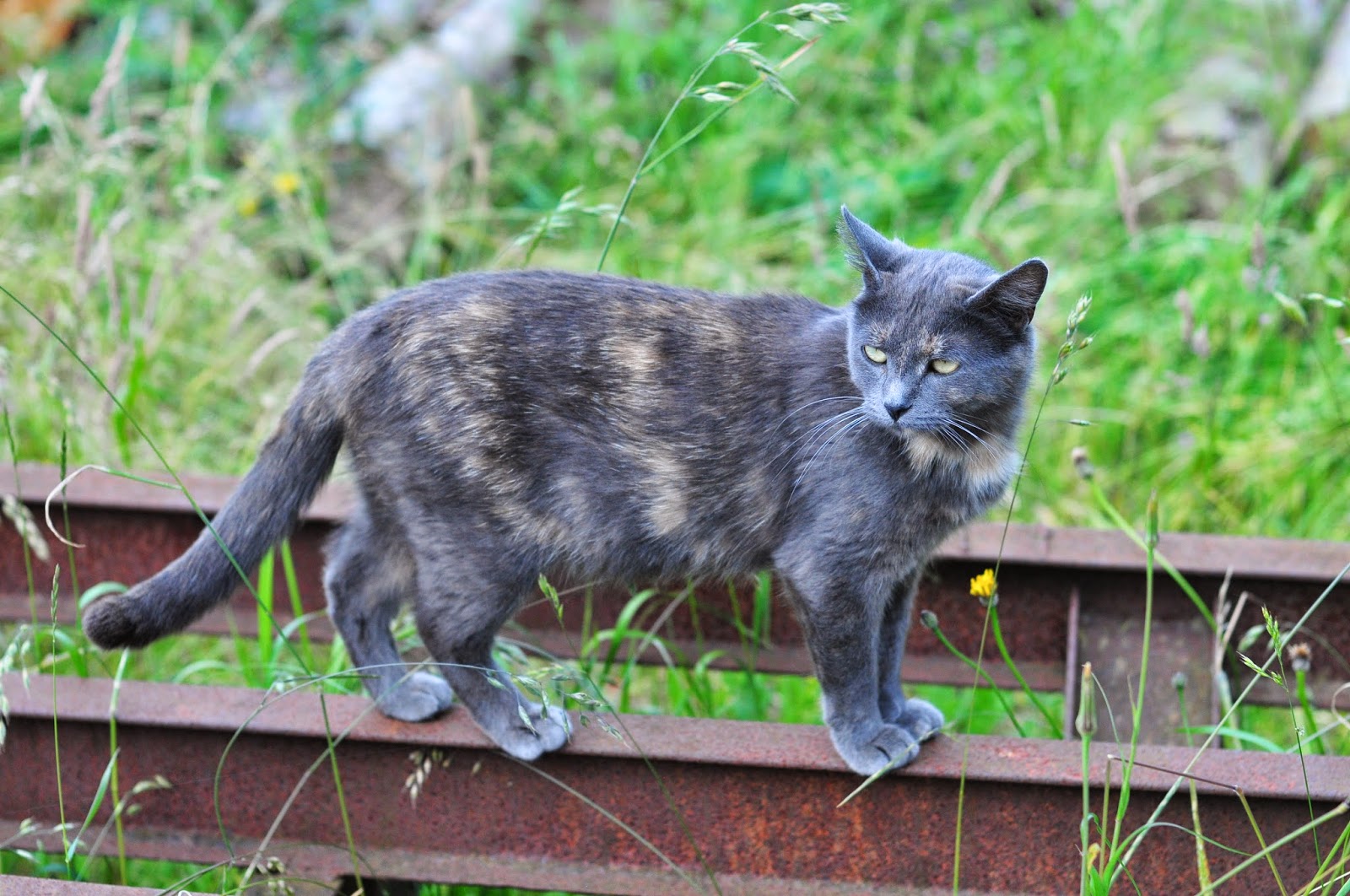 a slightly disgruntled molly surveys the world around her. she's not super keen on all those other cats that seem to be milling around the place, so she's got a slightly sardonic look. but i admire how she lives completely in the moment, just feeling what she feels and experiencing what she experiences. she does have expectations - that breakfast and dinner will be provided, that there will be some petting and rubbing under her chin when she desires it. on her terms. and when she's not pleased with those other cats, they get the occasional bop on the head with a lightning quick paw or else she climbs the nearest tree to put some distance between them and her.