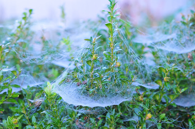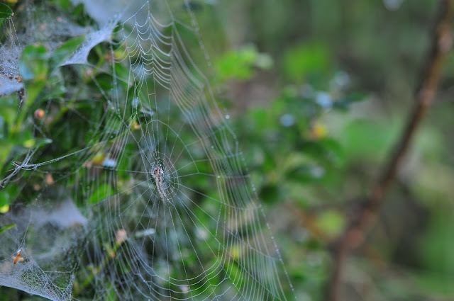 these fine webs have their glittering moment in the sun.