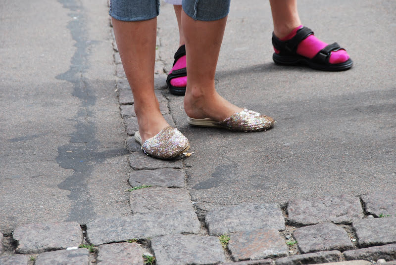 i'm not that keen on taking pictures of random strangers in public. i think i'm reluctant to have a confrontation if they catch me at it and ten years in scandinavia has rendered me unable to use what should be my natural american ability to just talk to strangers (tho' in all honesty, i'm not sure i ever had it) and ask them if i can snap their picture. however, i have no problem at all photographing people's feet. it somehow seems safer. you can do it more surreptitiously and i've found that it can be more interesting than you think.