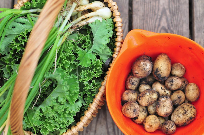 it also helps that dinner came from the garden - fresh kale, shallots and new potatoes. there is little that feels more satisfying than that, unless it's a kitten who smiles in her sleep.