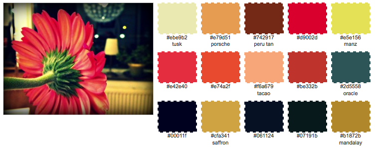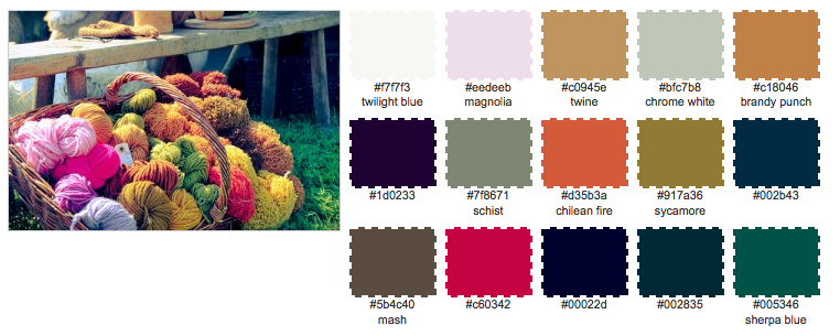 it's been awhile since i played with big huge labs' color palette generator i love to do this to check in on the colors that are attracting me at the moment. these are all photos i've taken recently. hmm, i sense warm scarves and quilts on the horizon...and i still haven't painted over that awful pink in the kitchen. i wonder if these colors are among the ones i bought two months ago?