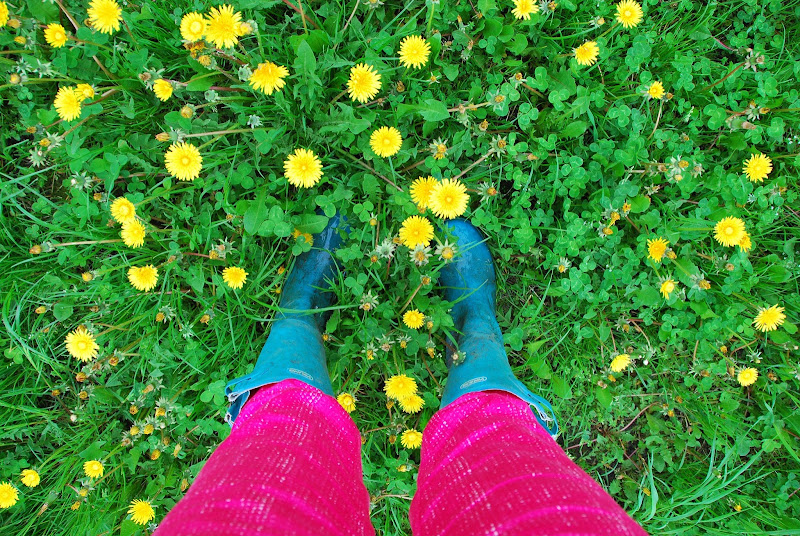 it's tuesday, but it feels like monday since monday was like sunday this week due to another of those danish spring holidays. the benefit of having a tuesday that's a monday is that you don't have a monday kind of a monday, since monday was a lot like sunday and tuesday is well, tuesday. so it can only be a good day, right? it's overcast, but warm and balmy, so i'm not complaining. you can't really complain much when you're wearing bright pink pants. even if you are also wearing your old wellies that are full of holes because you can't really decide what color of new ones to get. plus, it's a good year for dandelions. and is there anything more cheerful than a dandelion?