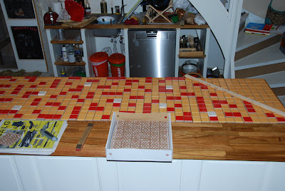 husband has a completely amazing capacity for work. he works until well after dark every evening. i feel a little ashamed of myself for the time i spend at the computer, but since i've been doing a bit of work this month on a consulting project, i try not to feel too badly about it. much of the work that he's doing i'm not really so much help with anyway--i managed to cut myself cooking on saturday (rather badly--it wouldn't stop bleeding for an alarmingly long time) and then again on sunday when i was working with the tiles--so imagine me near a saw! not good!