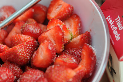 and then, after dinner, we ate our fill of these...the first of the local strawberries. with sugar and cream.