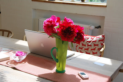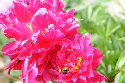 it's a sunny, but windy saturday and it struck me that i'm feeling a bit like my peonies. blowsy, somewhat unkempt, windblown and a bit past prime. but still pretty magnificent.