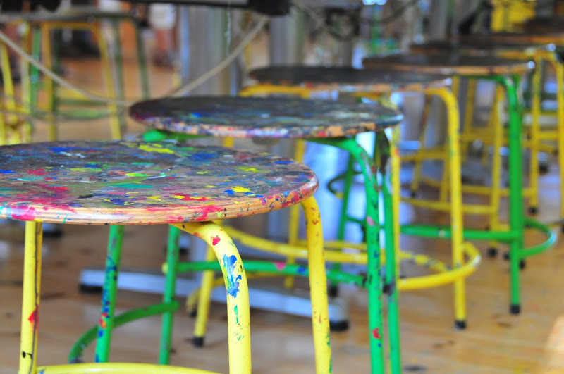 sabin and i painted this mural on the wall while she was home this summer and husband has done the rest of the painting. we used fancy handmade, non-toxic paint and it's really beautiful, though husband thought it was very hard to work with, so i'm not sure we'll be using it in the rest of the upstairs. the room is a bit minimalist at the moment, as we're still painting the two chests of drawers that we got second-hand and they're not quite finished.