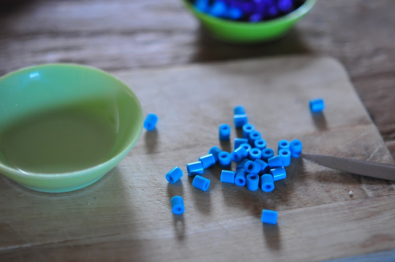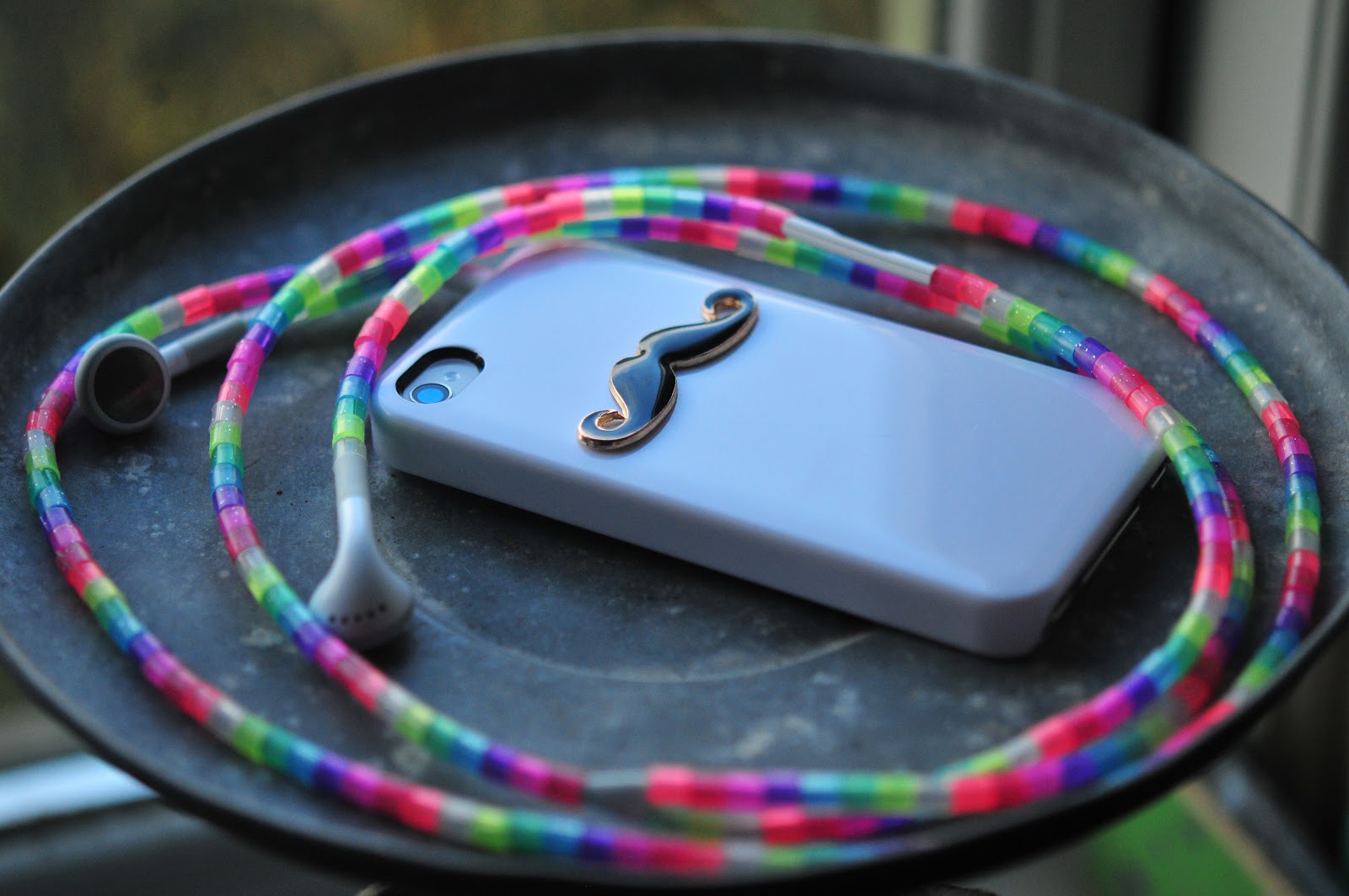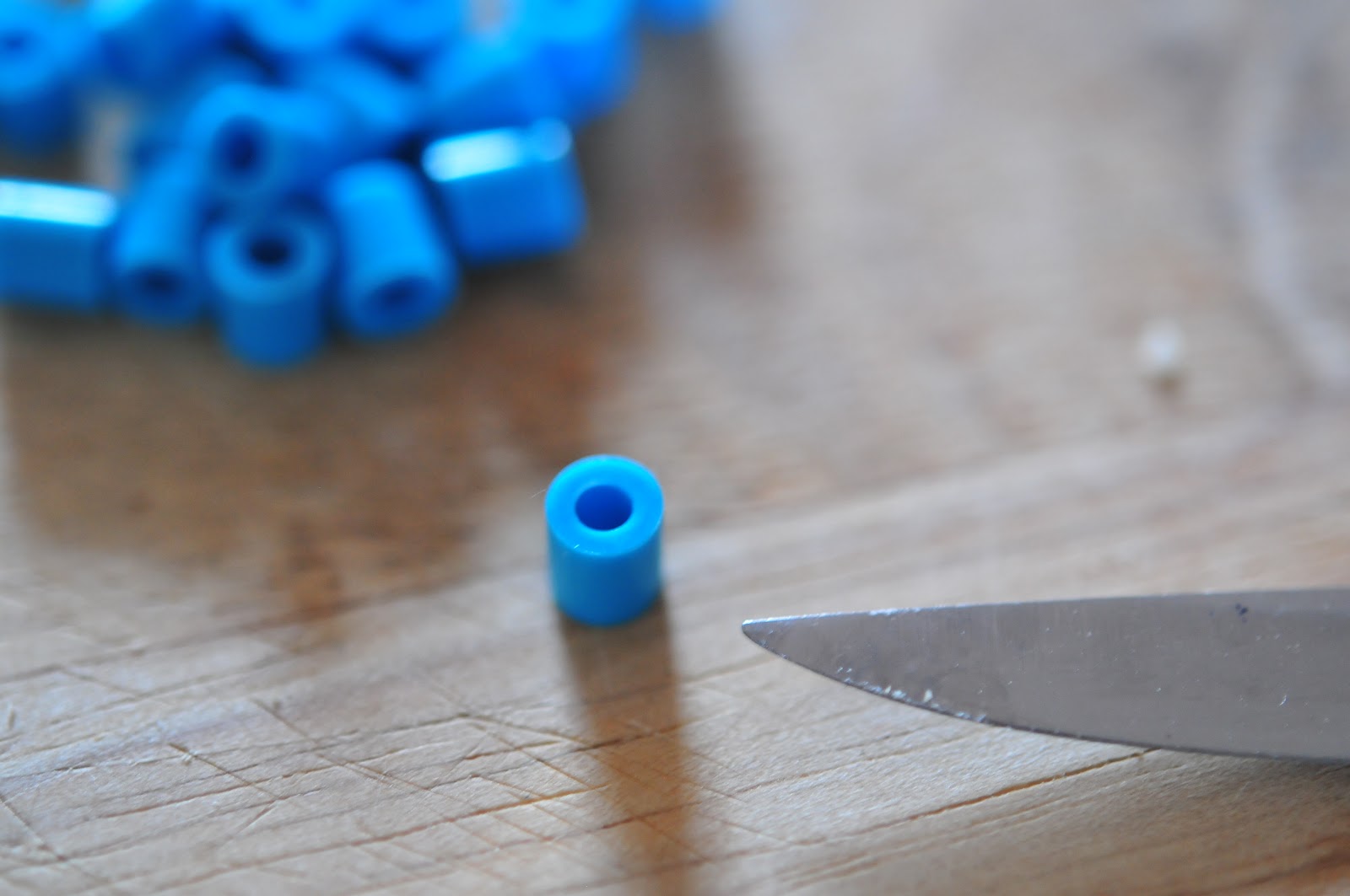 a little how-to, since i've not done one in ages. i pinned this on pinterest and was inspired to adjust the idea a bit. we have loads of perler (beads) lying around and sabin doesn't really use them that much anymore, so we decided they'd be perfect for decorating and protecting our iPhone headphones.