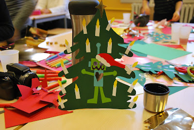these yearly school traditions are lots of fun. we sit and giggle with the kids, talk to the other parents during recess when it becomes blissfully quiet in the room, come to understand why teachers go down with stress (20 kids make a LOT of noise) and we (being husband and i) challenge traditional notions of what the holidays are about. and because it was nisse and trees, there wasn't much religion in it. and that's just fine with us. there's a need for a comforting winter holiday to help one through this dark time of year. and besides, it was four wise guys and a robot who showed up at the manger, right? i mean, why not? it's just as plausible as that other story.