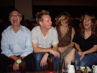 it was very dark and still pouring down rain when we piled back into the bus to go back to our hotel. my sister decided to stick her head out the open window to holler something at someone, as she is prone to doing at times (she has the occasional issue remembering to use her indoor voice), especially after a refreshing malt beverage or two. when she pulled her head back in, off into the rain-soaked darkness on the OUTSIDE of the bus flew one of her giant diamond earrings, which she'd received as a pushing present (thank you, spud, for that phrase) for her second son. very strangely, at exactly that moment, i was reading a text message on my mobile phone from her ex-husband, asking me to have her call as soon as she could about that second child's visit to the EAR doctor!