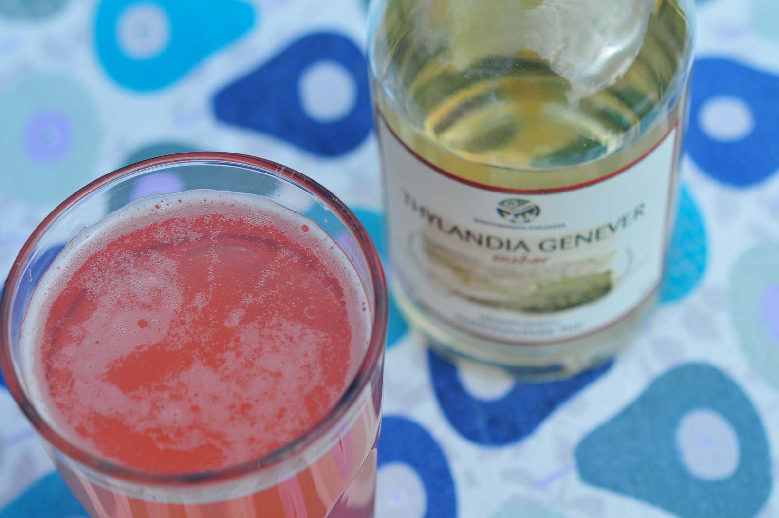 the sun came out at long last this afternoon. the garden table beckoned. the birds sang. and after a long day at work, the lure of a relaxing cocktail was irresistible. but i didn't feel like an ordinary glass of my old pal chardonnay, nor was it quite warm enough to break out the rosé. the sun-kissed late spring air whispered of something a bit more exotic, something a bit seasonal, something sweet yet tart. in short, a cocktail worthy of one of the first late spring sunshiney days.