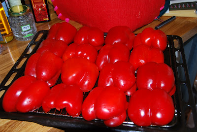 8 red bell peppers, roast in the oven, then remove the skins and slice them into bite-sized pieces