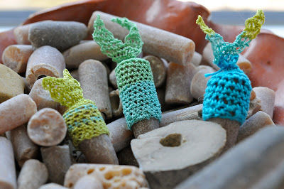 crocheted stones. and yes, there is a kind of an eyeball thing going on with them.