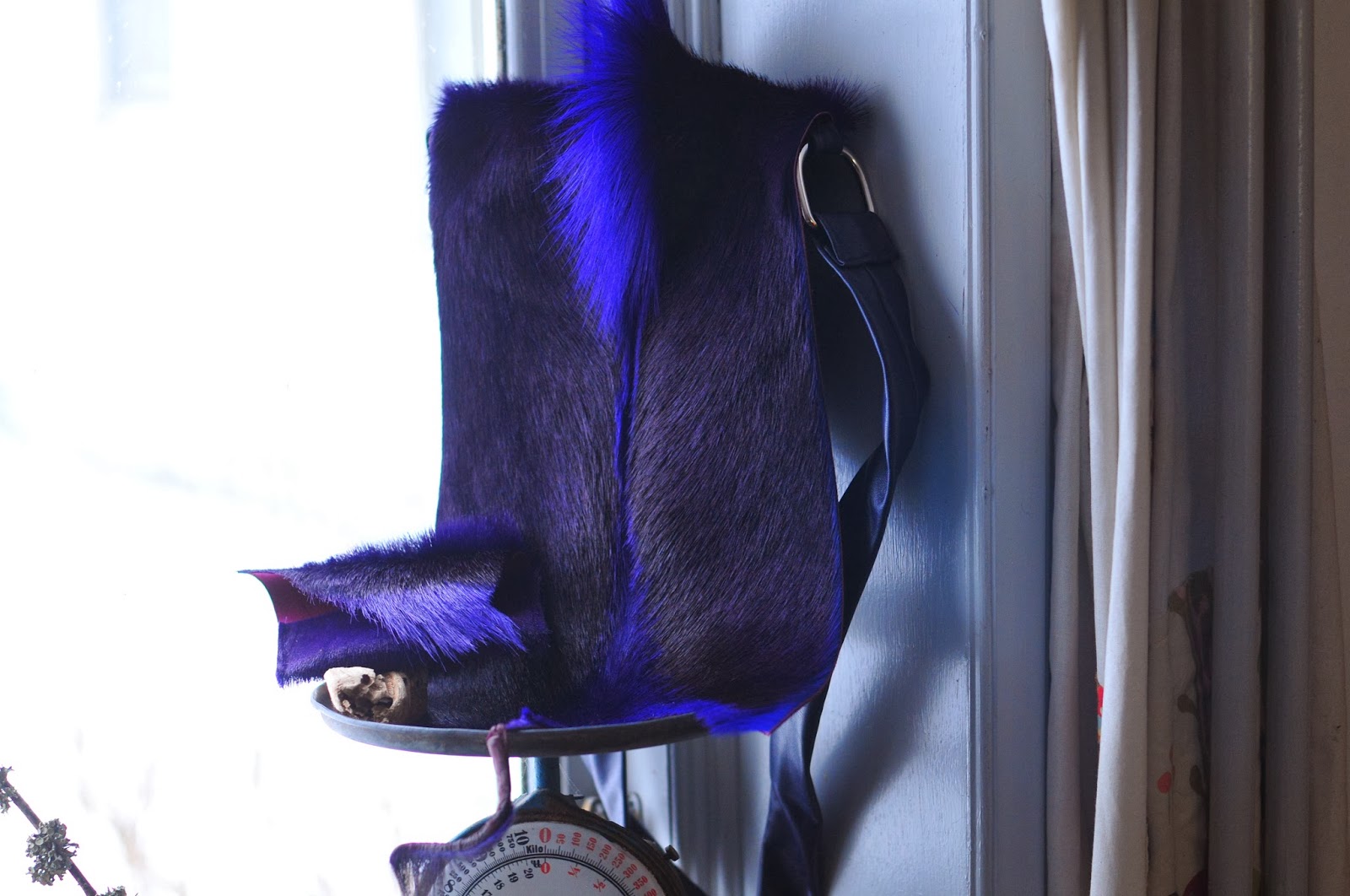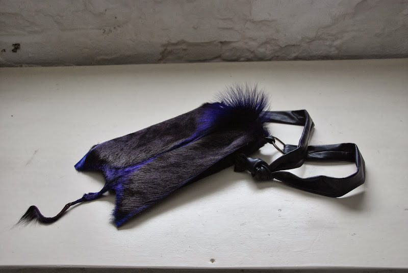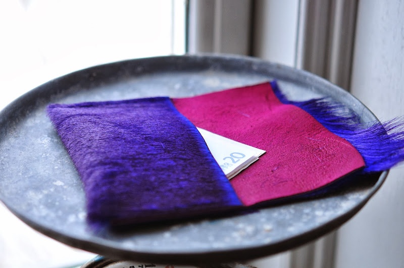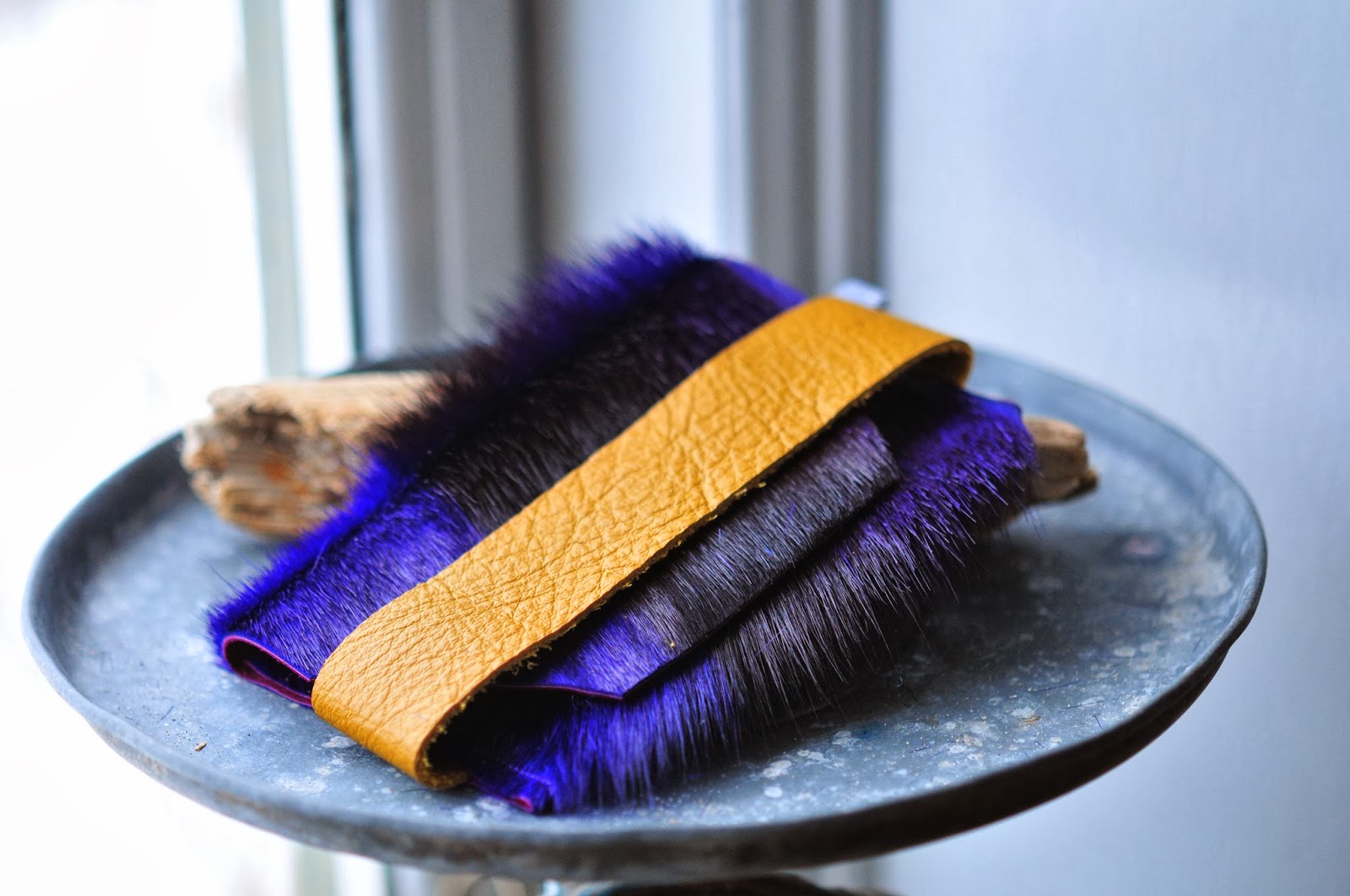 so as not to let the scraps go to waste, i sewed up a very simple little wallet as well. again, using the natural nap of the fur on the hide. i love how it turned out too.