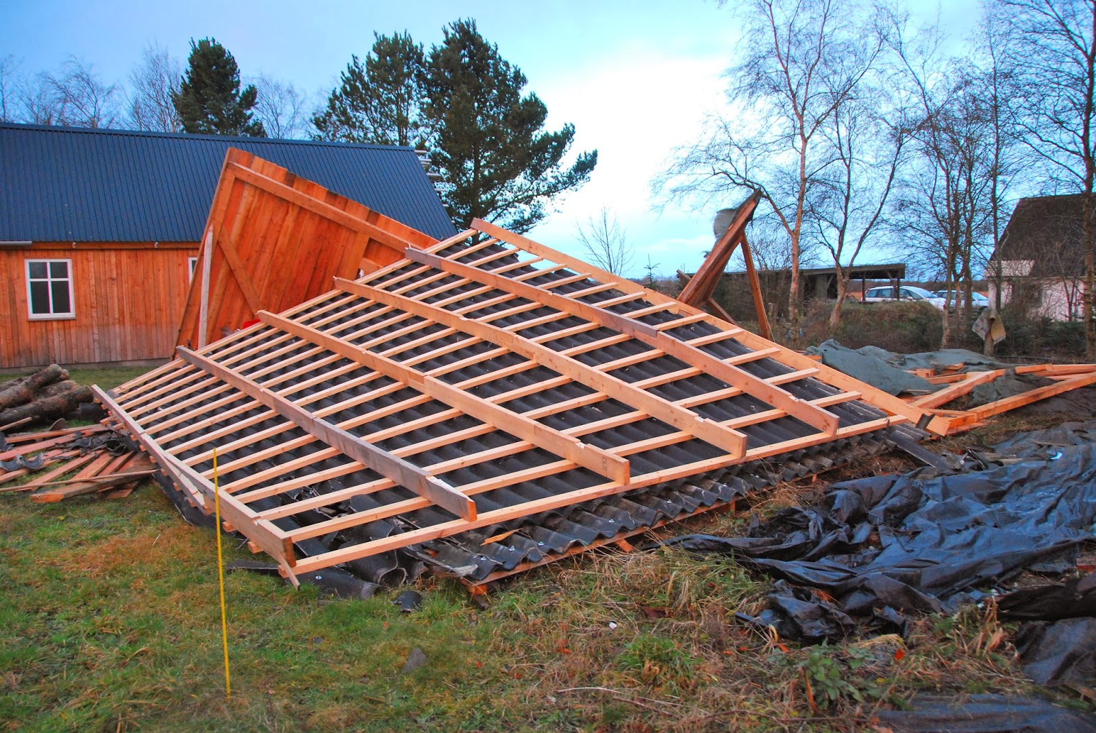 danish, they haven't got a clue - i seriously got a warning via my DMI iPhone app 5 hours after the storm had blown through and was over), we knew it was coming and we battened down the hatches, so there was very little damage around our house. a few branches here and there, but even all of husband's tarps covering various projects stayed put (he's a good battener). at one point, the roof made some seriously ominous creaking sounds and i thought perhaps some of it would go, but it held and there's no sign of any damage to it this morning. this old house is sturdier than it looks.
