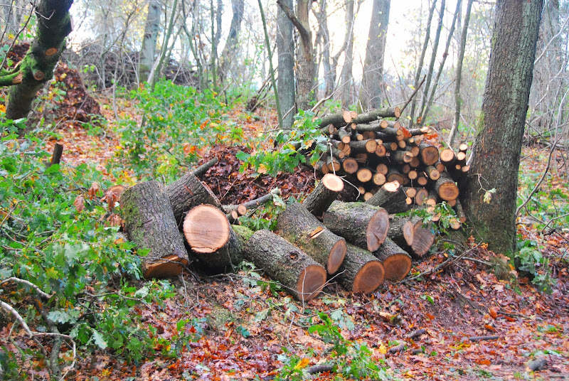 people are really quick to clean up, especially if one of their trees is blocking the road. this morning, when i ran sabin to school around 7:30, the tree above already looked like this, all neatly stacked and everything: