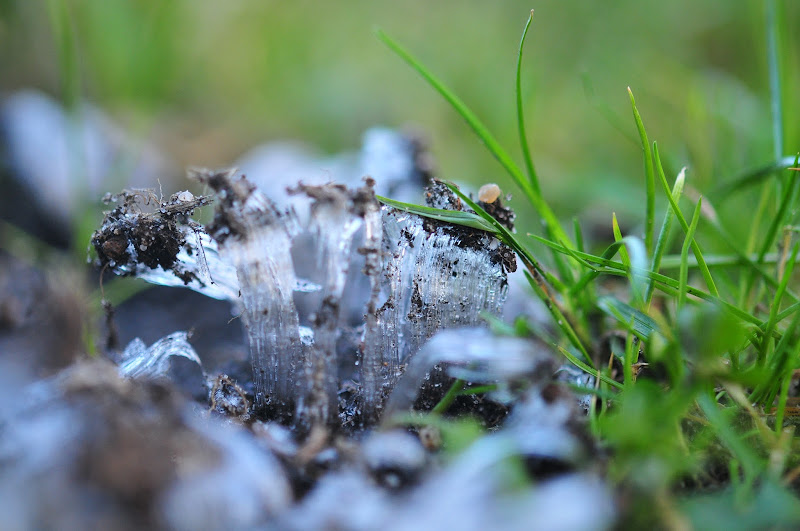 we've had really mild temperatures so far in january, but a couple of days ago, it turned cold. it must have frozen at precisely the right pace for these amazing ice crystals to form on top of a fresh mole hill. i happened to notice it when i went out for a vitamin d walk when the sun peeked out for a few minutes the other day. i've never seen anything like them - like the water was forced up out of the ground as it contracted and froze and flash froze the water as well (you can tell i am a literature person and didn't pay attention in science class, but you can see what i mean in the photos). very grateful for my photo every day habit - it's what made me notice this at all.