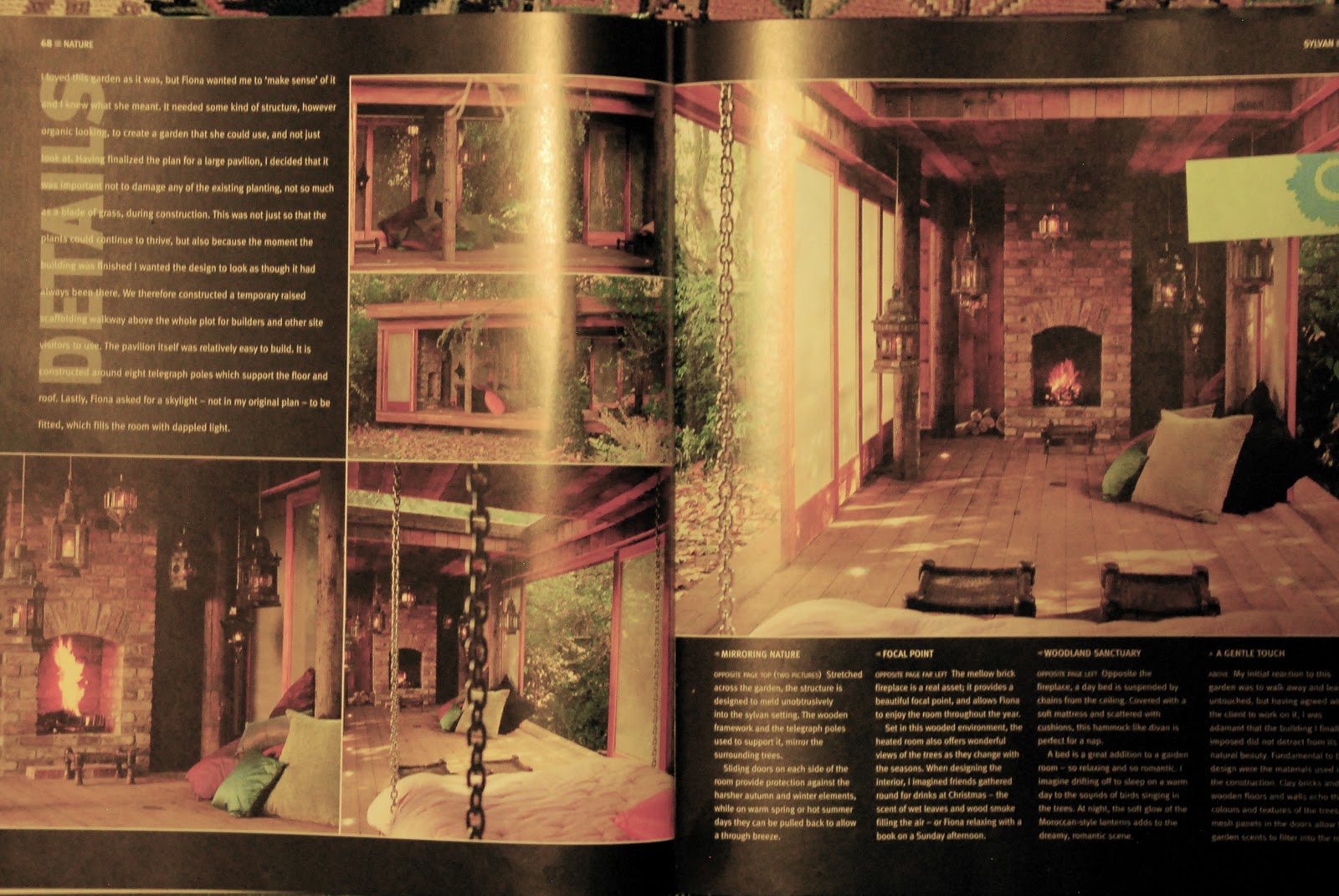 bad nighttime picture of inspiring page from diarmuid gavin's outer spaces book.