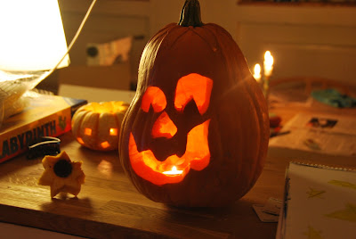 - realizing that we've already managed to establish traditions with sabin--she insisted on the ritual pleasure of roasting pumpkin seeds last night when we carved the pumpkins. i had actually forgotten about doing that, but she remembered and said, "but mom, we ALWAYS roast pumpkin seeds with that yummy salt."