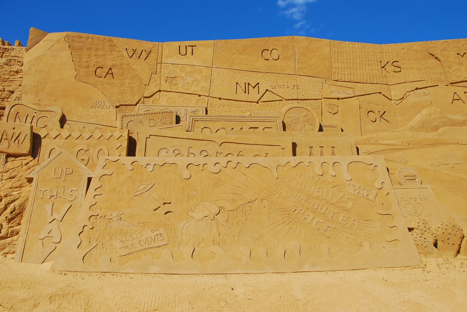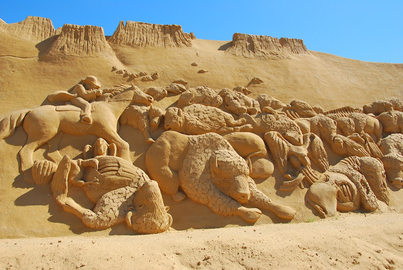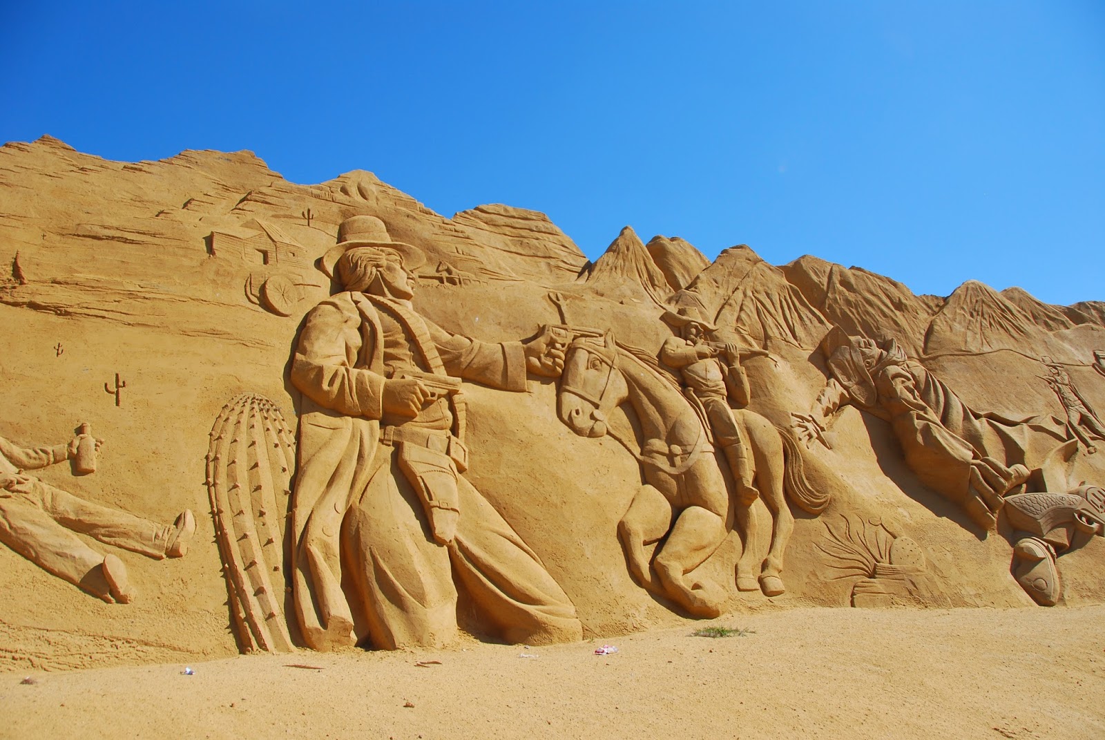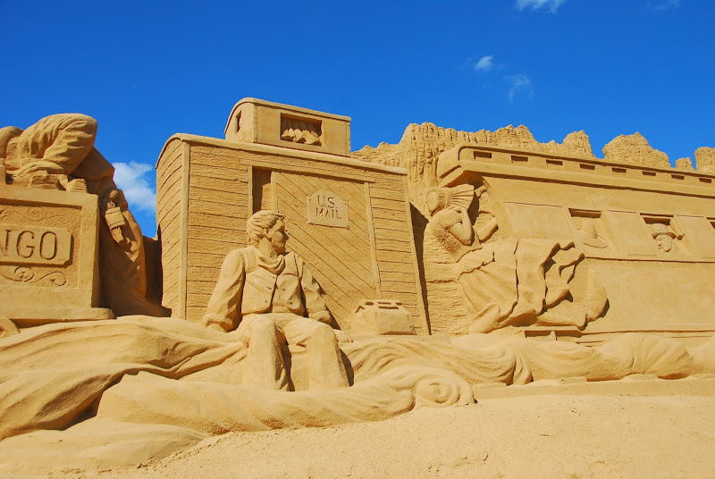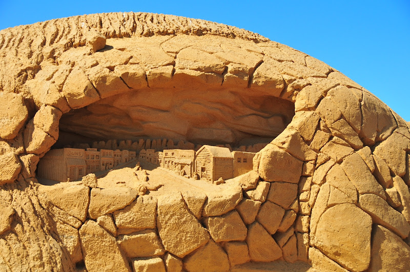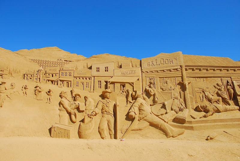 the theme is the wild west. and a variety of sand artists from all over the world (tho' none actually from denmark), got together and made some seriously cool ephemeral art.