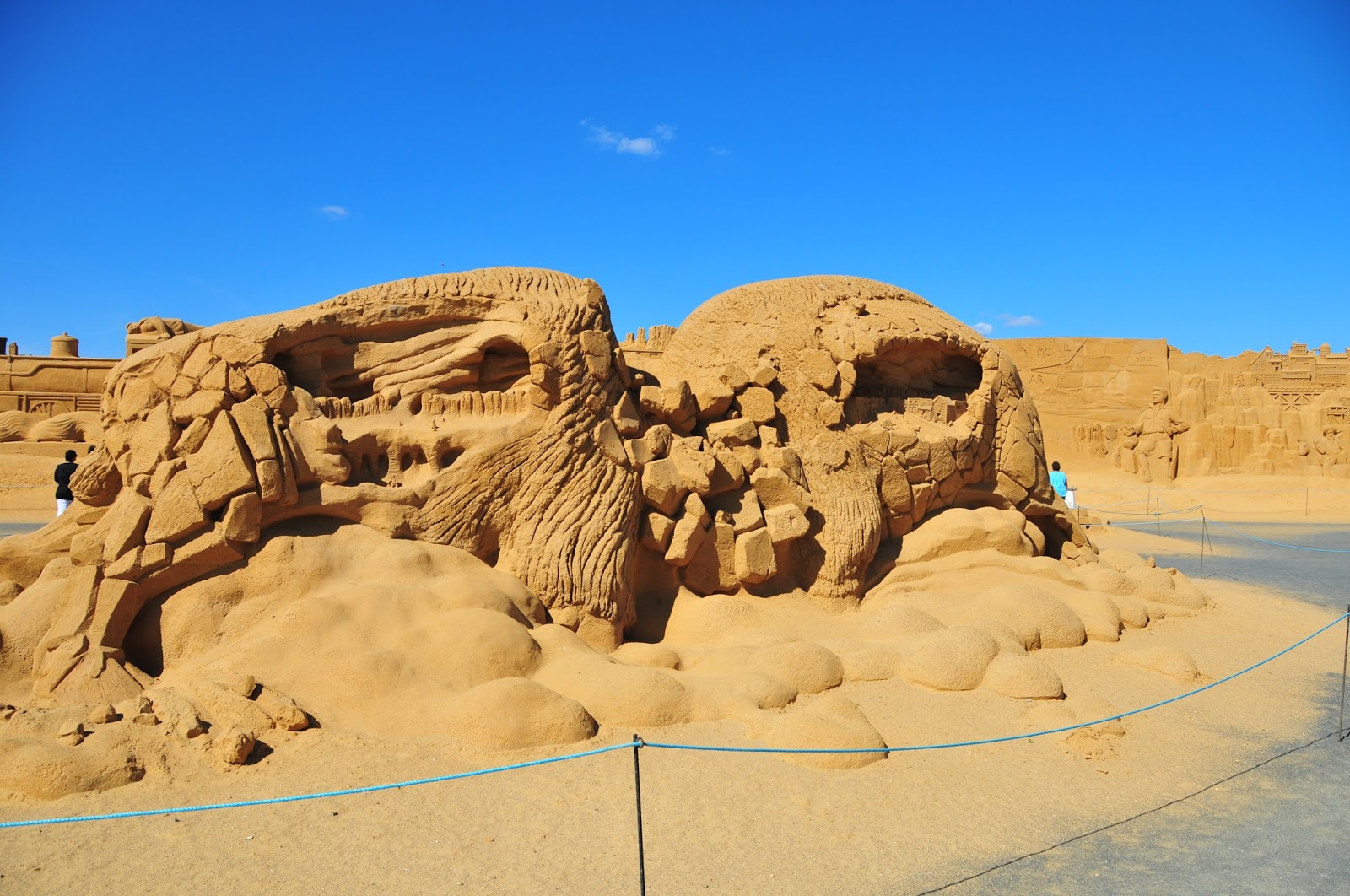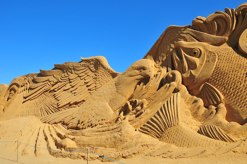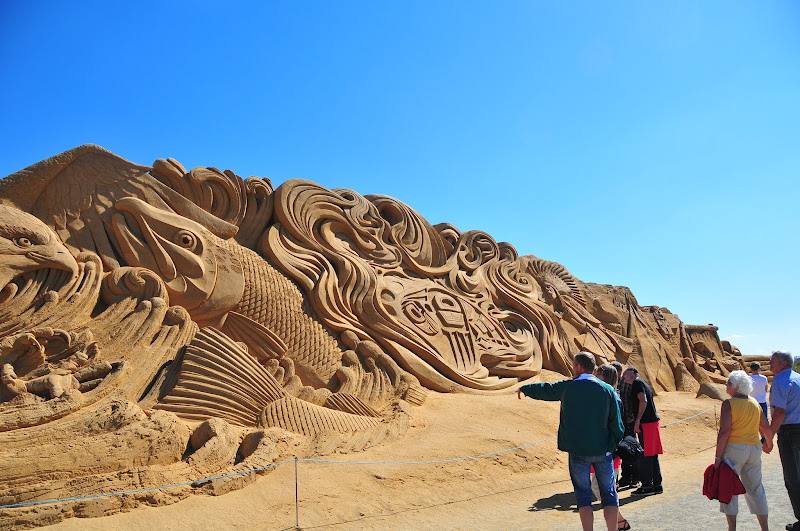 out at the west coast, there's a sand sculpture festival going on. we went on saturday, and as you can see, the weather was absolutely glorious for it.