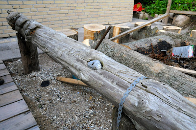 and so i try to let some of that rub off on me. i do it in small ways. the above photo is an example. i found that perfect eyeball stone on my last trip down møn's klint. about a month ago, i noticed that it tucked nicely into the hole in that piece of driftwood. the driftwood forms a bench of sorts near our grill table (yes, we had a table made with a grill in the center of it--more about that another time).
