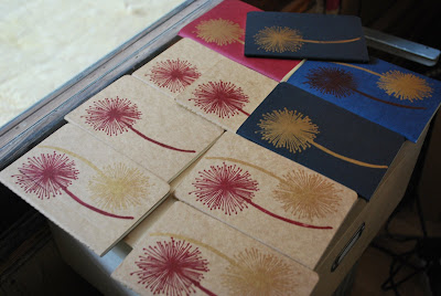 in typical procrastination mode this morning, instead of tackling my growing to do list, i was suddenly inspired to make a few gocco prints with my nifty little printer. first, i drew a dandelion and made a print master of it.