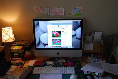 i have three half-finished articles open on my screen. i am now on day three of spending long stretches staring at them. what is it? why can't i wrap them up? i guess it's not so much procrastination as a block of some sort. but how do i clear it out? i thought perhaps indulging in creativity would help. the repetitive motion of printing gocco cards has given me plenty of time to think. so maybe it's time to give it another go. or perhaps i'll wait 'til tomorrow...
