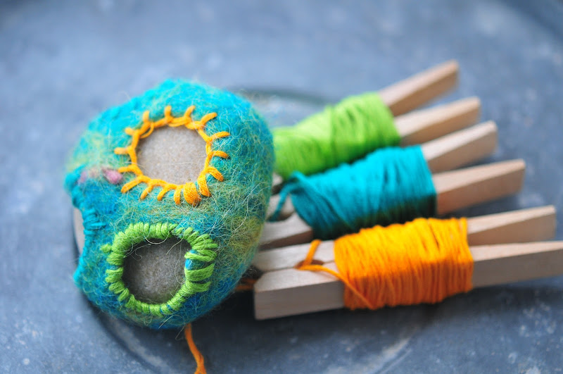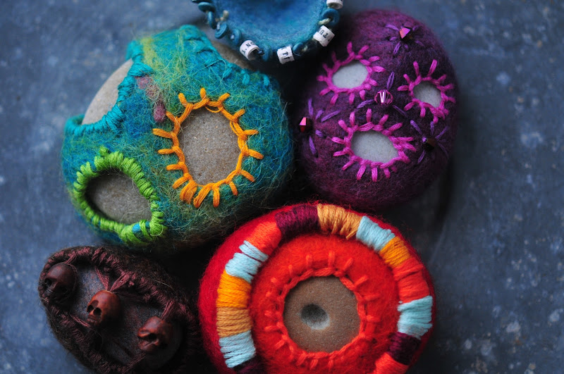 i'm also going to add some more embellishment (stitching, beads, painting on the stone) to these, so they're still works in progress. but i just had to share them already now. i feel like they're a breakthrough in making the felted stone notion my own. and they're getting me closer to a picture that's in my head. stay tuned.