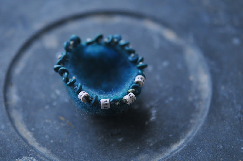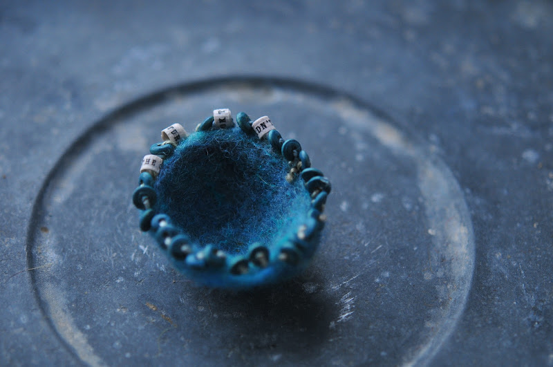 one of the little bowls got an edging of beads i once bought in manila, plus a few little paper beads with a poem on them that i got ages ago from field & sea on etsy.